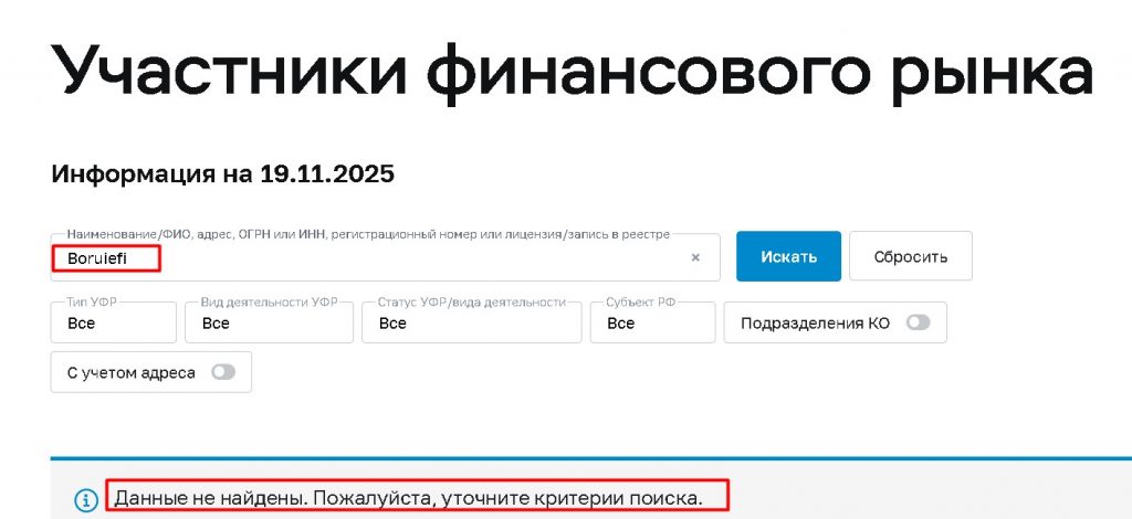 Деятельность Boruiefi является нелегальной на территории РФ.
