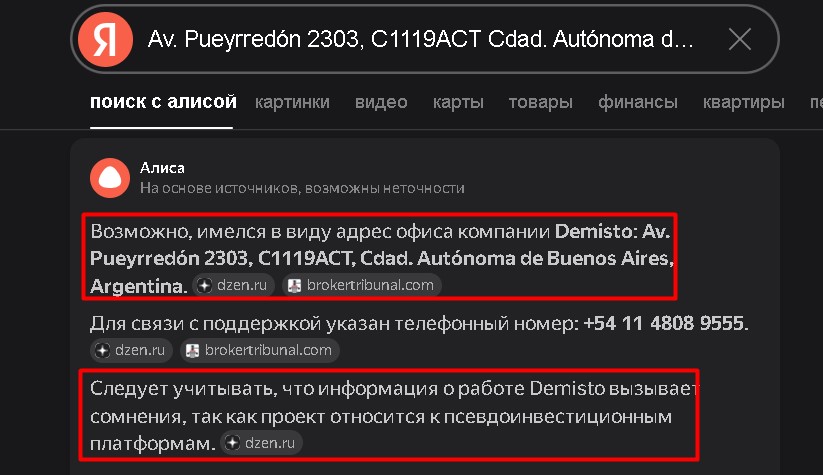 Независимая проверка брокера Demisto (demisto.xyz, d-isto.pro, dem-isto.link): анализ фальшивой лицензии DFSA, адреса в Аргентине и типичной мошеннической схемы с терминалом Mtweb. Реальные истории людей, которые столкнулись с требованиями оплаты «налогов» и «страховок» для вывода средств.