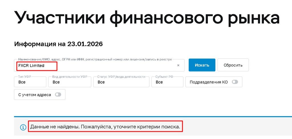 Важный факт: В 2023 году Авторитет финансовых рынков Квебека (AMF, Канада) официально предупредил инвесторов, что FXCR Limited не зарегистрирована и не имеет права привлекать средства в провинции Квебек.