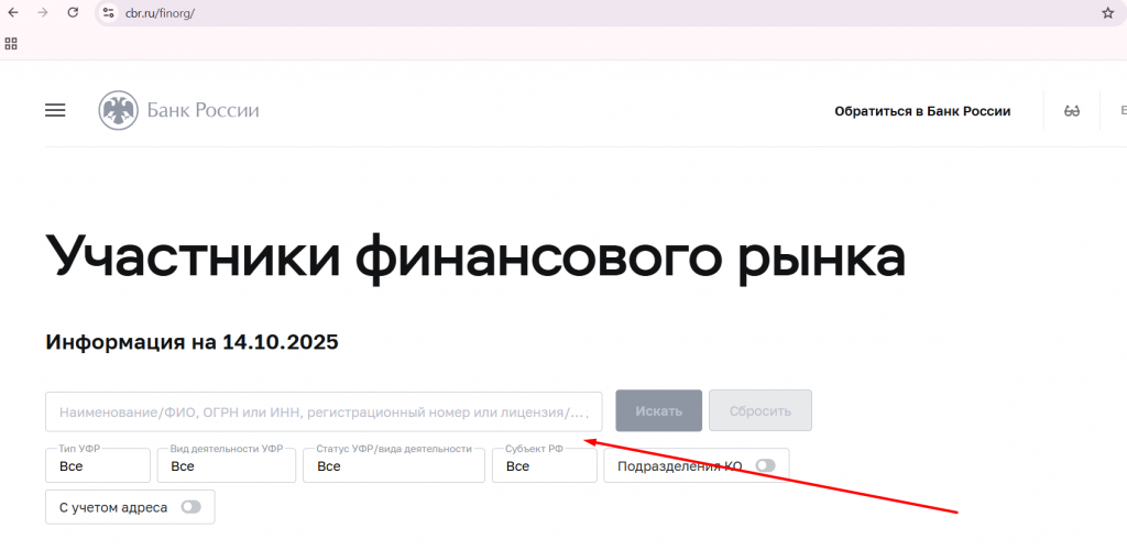 Перейдите на официальный сайт Центрального банка РФ → раздел «Финансовые организации». https://cbr.ru/finorg/