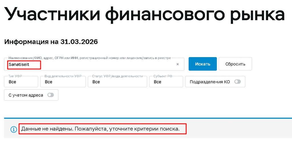 Редакция продолжает получать сообщения о проблемах с выводом на платформах sanatiseit.com и sana-tiseit.world. Мы настоятельно рекомендуем воздержаться от любых вложений в этот проект и проверить наличие лицензии у любого брокера перед переводом средств.