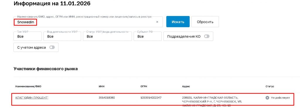 Сотрудничество с такой платформой несет стопроцентный риск потери всех вложенных средств. Настоятельно рекомендуем избегать любых контактов с Snowedin и аналогичными проектами, а для инвестиций выбирать только компании, проверенные в официальных реестрах регуляторов.